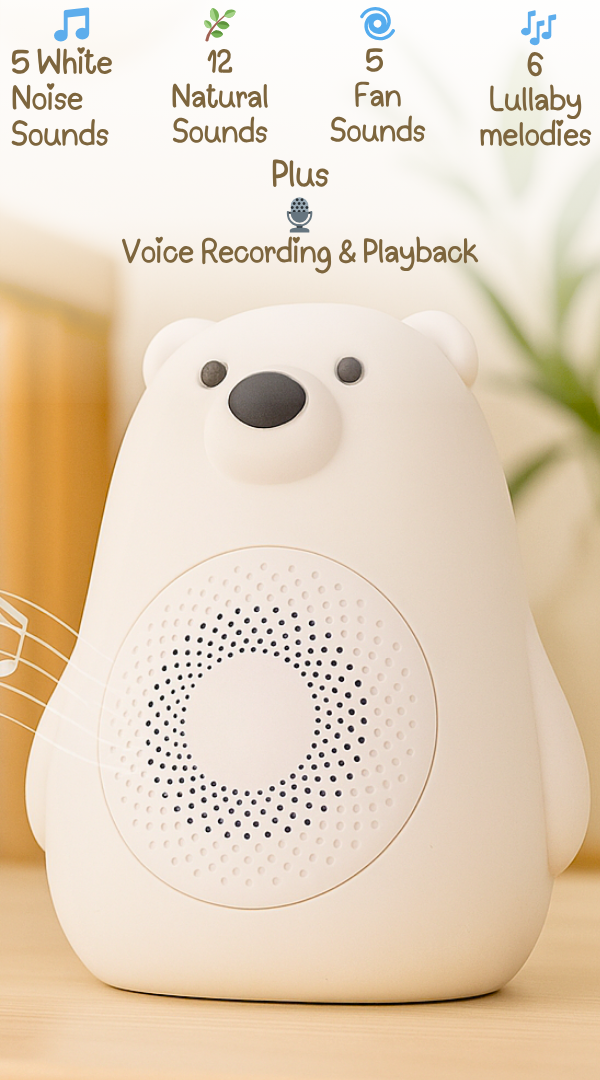 Meet Cubbie, The Snooze Buddy by Smileybubblybaby™ — your baby’s newest bedtime best friend. Designed to help little ones drift into dreamland faster and stay asleep longer, Cubbie combines the power of white noise, gentle lullabies, and a soothing multicolor night light to create a calming sleep environment. Whether it’s the soft hum of a fan, gentle natural sounds, or your own comforting voice, Cubbie helps transform bedtime from fussy to peaceful.