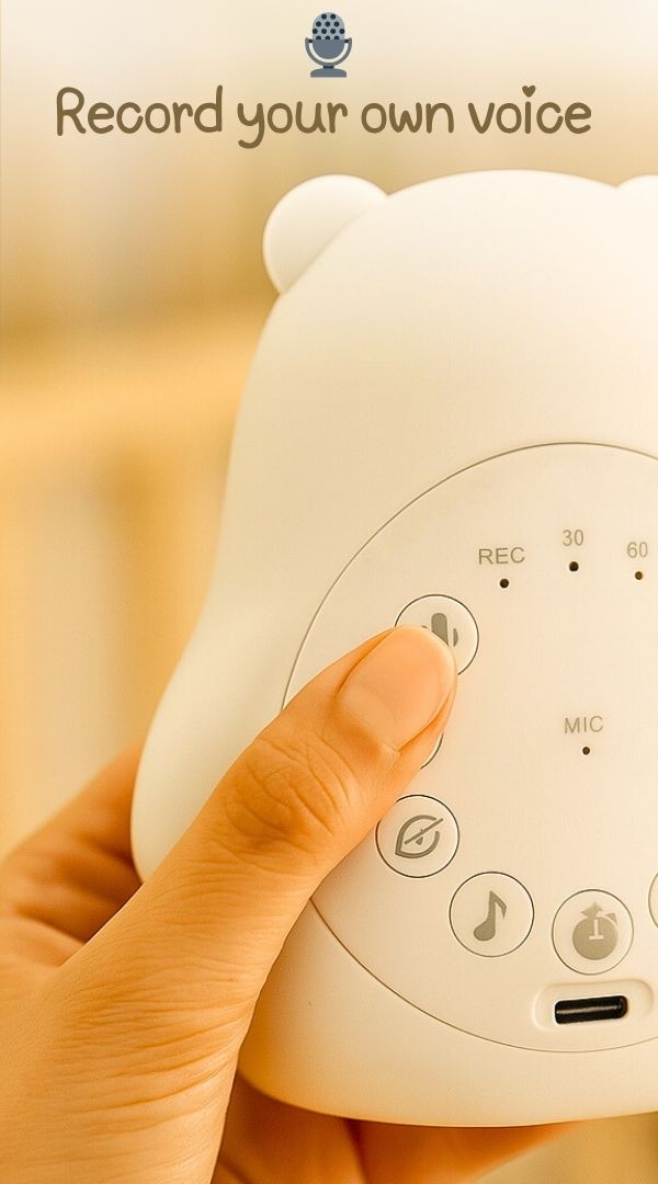 🎙️ Voice Recording & Playback – Record a parent’s voice or lullaby for extra comfort and reassurance.